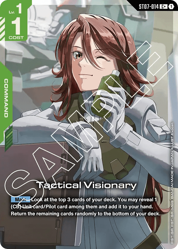 - [Main] Look at the top 3 cards of your deck. You may reveal 1 (CB) Unit card/Pilot card among them and add it to your hand. Return the remaining cards randomly to the bottom of your deck.