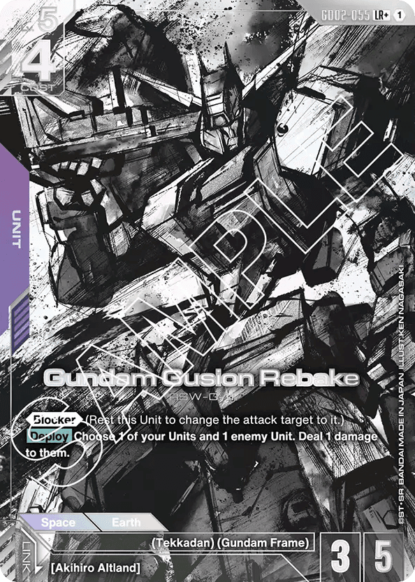 - <Blocker> (Rest this Unit to change the attack target to it.) — [Deploy] Choose 1 of your Units and 1 enemy Unit. Deal 1 damage to them.