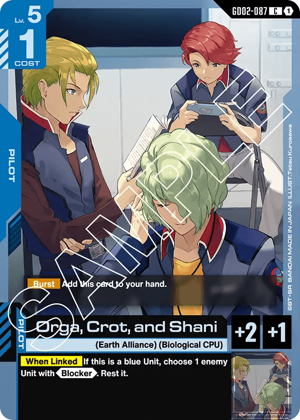 [Burst] Add this card to your hand. — [When Linked] If this is a blue Unit, choose 1 enemy Unit with <Blocker>. Rest it.
