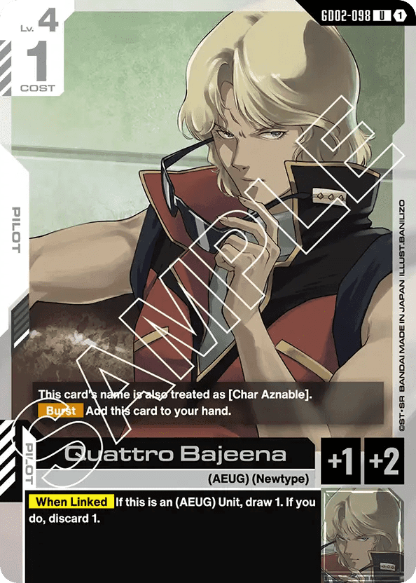 - [Burst] Add this card to your hand. — [When Linked] If this is an (AEUG) Unit, draw 1. If you do, discard 1.
