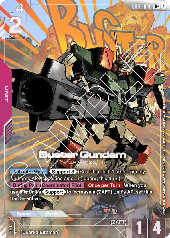 [Activate・Main]<Support 3> (Rest this Unit. 1 other friendly Unit gets AP+(specified amount) during this turn.) — [During Pair・(Coordinator) Pilot] [Once per Turn] When you use this Unit's <Support> to increase a (ZAFT) Unit's AP, set this Unit as active.