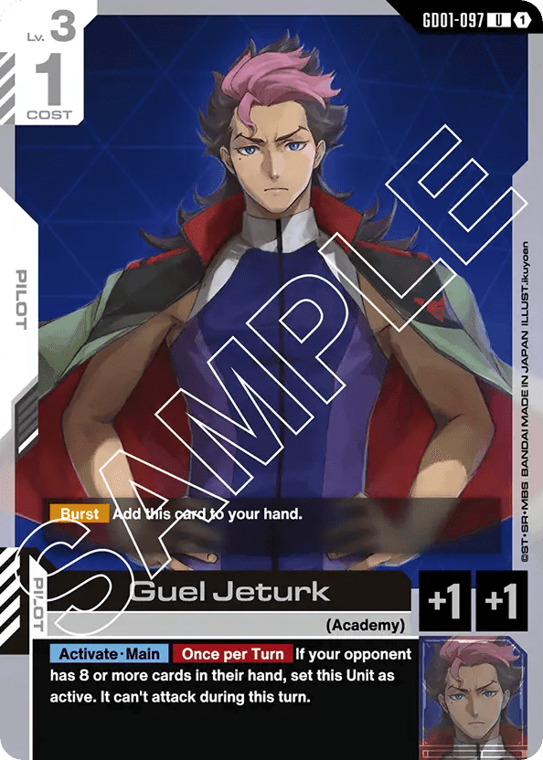 - [Burst] Add this card to your hand. — [Activate・Main] [Once per Turn] If your opponent has 8 or more cards in their hand, set this Unit as active. It can't attack during this turn.