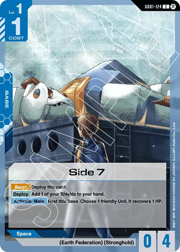 - [Burst] Deploy this card. — [Deploy] Add 1 of your Shields to your hand. — [Activate・Main] Rest this Base:Choose 1 friendly Unit. It recovers 1 HP.