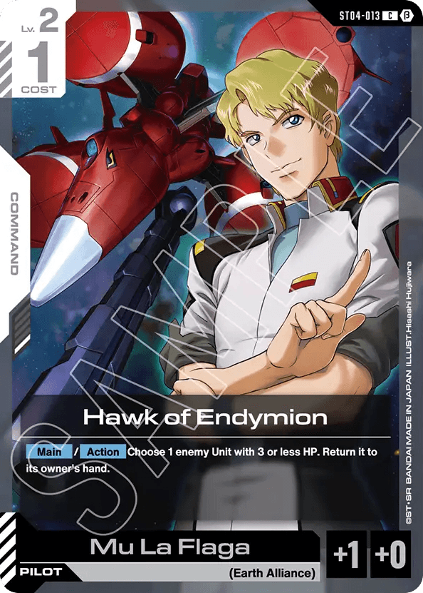 - [Main]/[Action] Choose 1 enemy Unit with 3 or less HP. Return it to its owner's hand. — [Pilot] [Mu La Flaga]