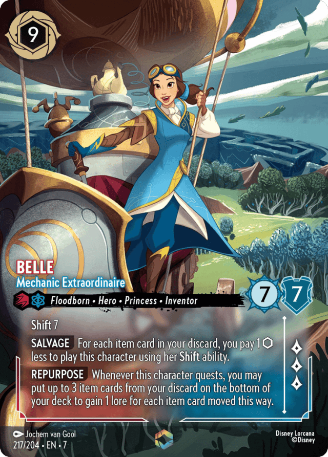 For each item card in your discard, you pay 1 {Ink} less to play this character using her Shift ability.