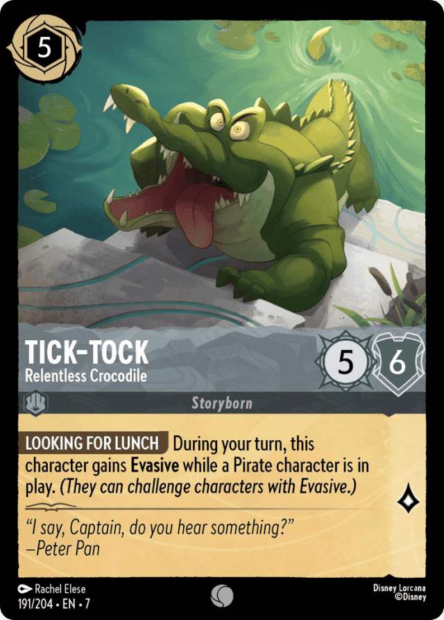 During your turn, this character gains Evasive while a Pirate character is in play. (They can challenge characters with Evasive.)