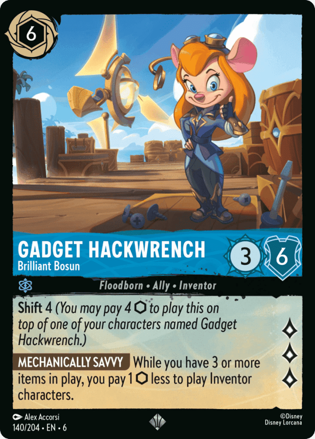 While you have 3 or more items in play, you pay 1 {Ink} less to play Inventor characters.