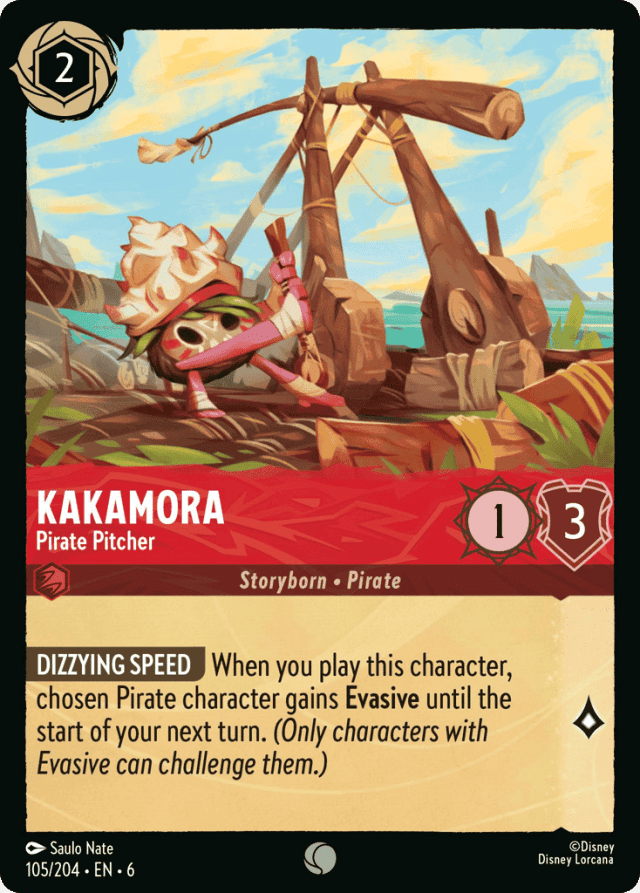 When you play this character, chosen Pirate character gains Evasive until the start of your next turn. (Only characters with Evasive can challenge them.)