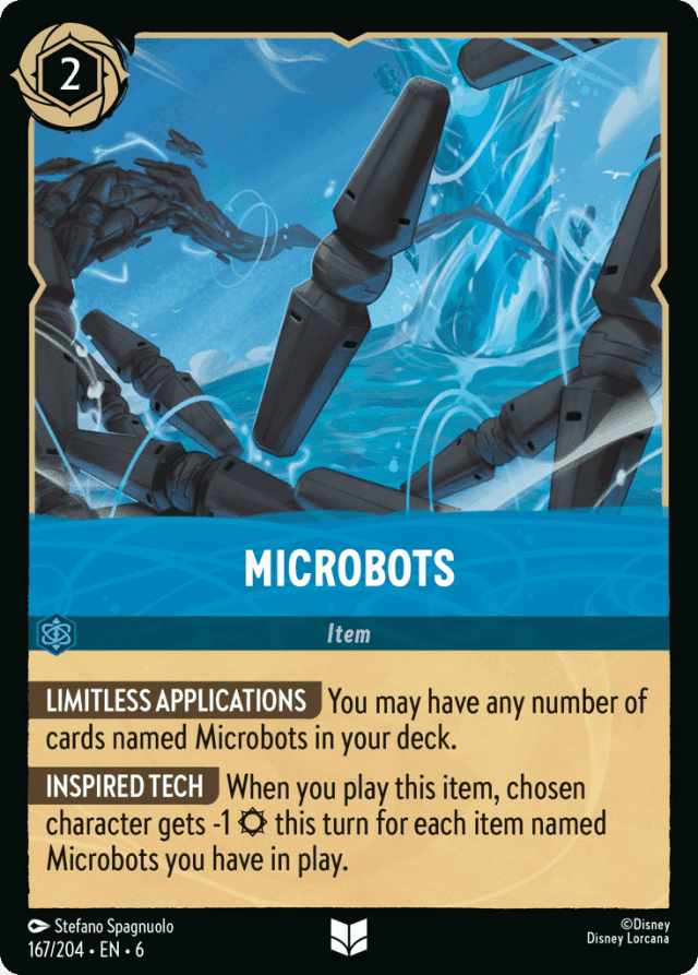 When you play this item, chosen character gets -1 {Strength} this turn for each item named Microbots you have in play.