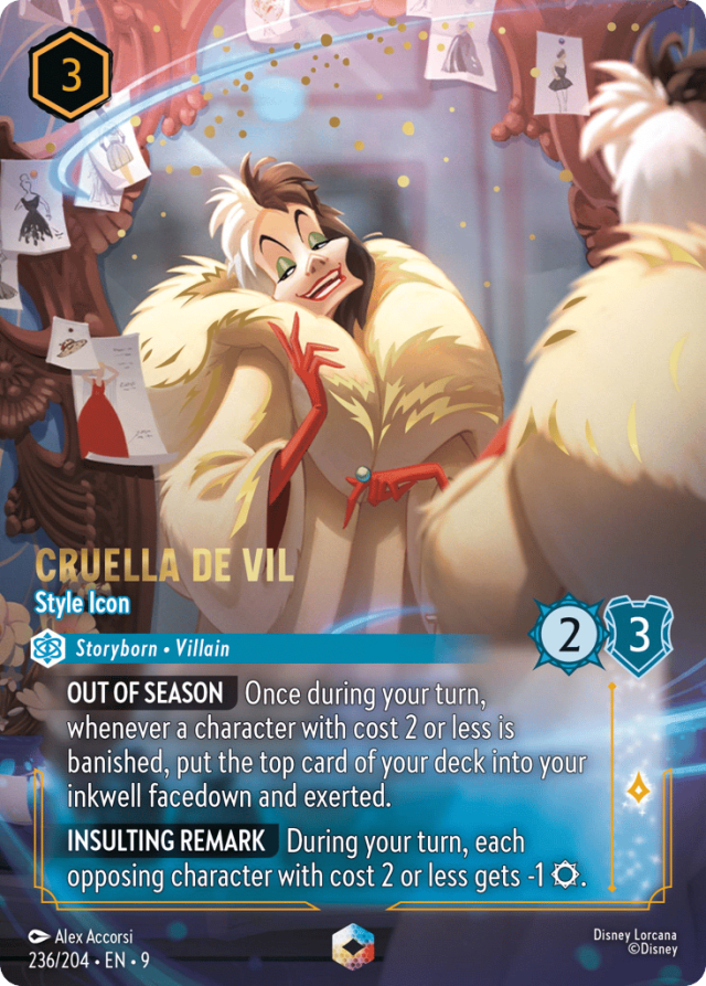 Once during your turn, whenever a character with cost 2 or less is banished, put the top card of your deck into your inkwell facedown and exerted.
