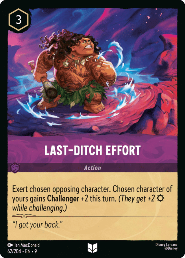 Exert chosen opposing character. Chosen character of yours gains Challenger +2 this turn. (They get +2 {Strength} while challenging.)