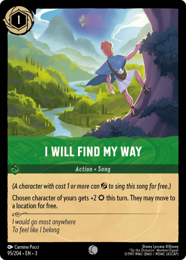 (A character with cost 1 or more can {Exert} to sing this song for free.) Chosen character of yours gets +2 {Strength} this turn. They may move to a location for free.