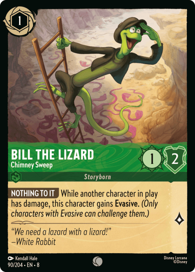 While another character in play has damage, this character gains Evasive. (Only characters with Evasive can challenge them.)