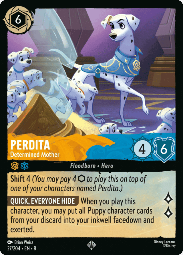 When you play this character, you may put all Puppy character cards from your discard into your inkwell facedown and exerted.