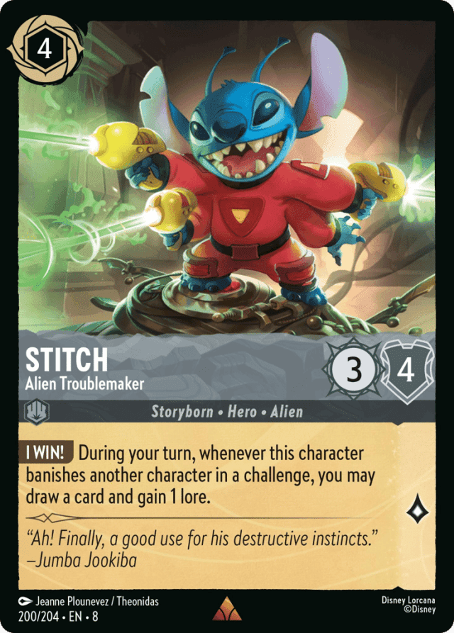 During your turn, whenever this character banishes another character in a challenge, you may draw a card and gain 1 lore.