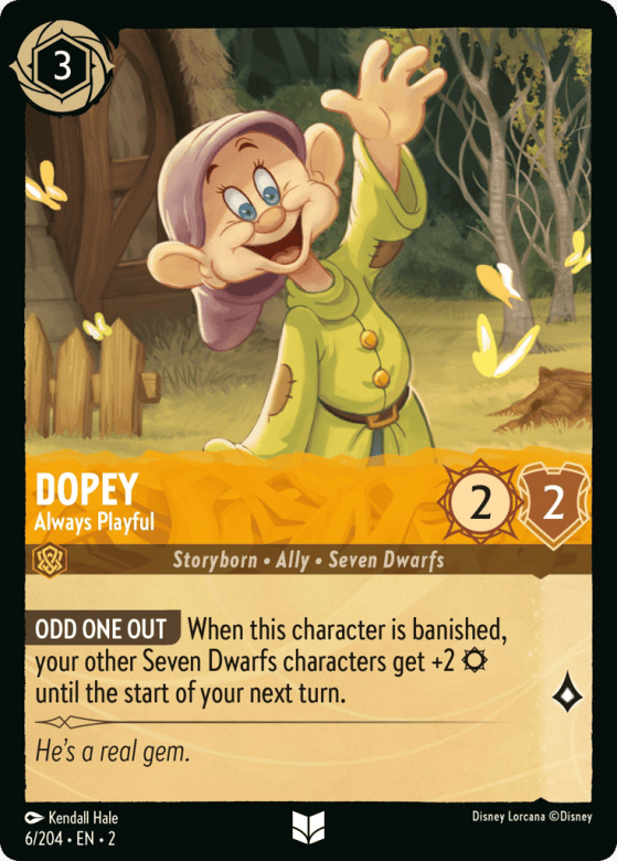 When this character is banished, your other Seven Dwarfs characters get +2 {Strength} until the start of your next turn.