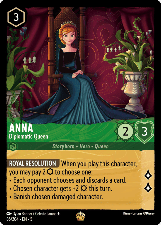 When you play this character, you may pay 2 {Ink} to choose one: • Each opponent chooses and discards a card. • Chosen character gets +2 {Strength} this turn. • Banish chosen damaged character.