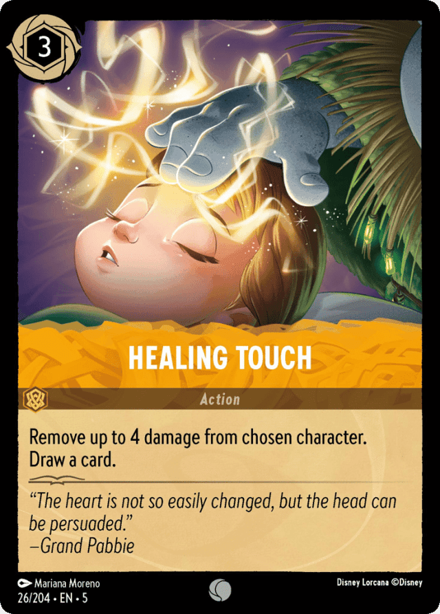 Remove up to 4 damage from chosen character. Draw a card.