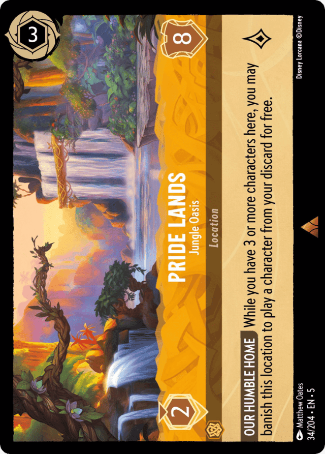 While you have 3 or more characters here, you may banish this location to play a character from your discard for free.