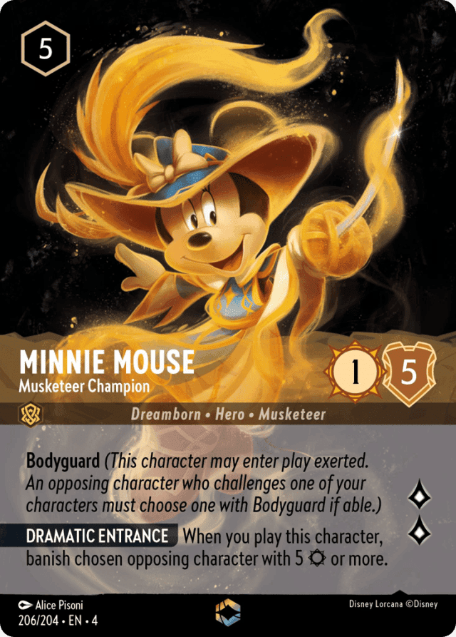 When you play this character, banish chosen opposing character with 5 {Strength} or more.