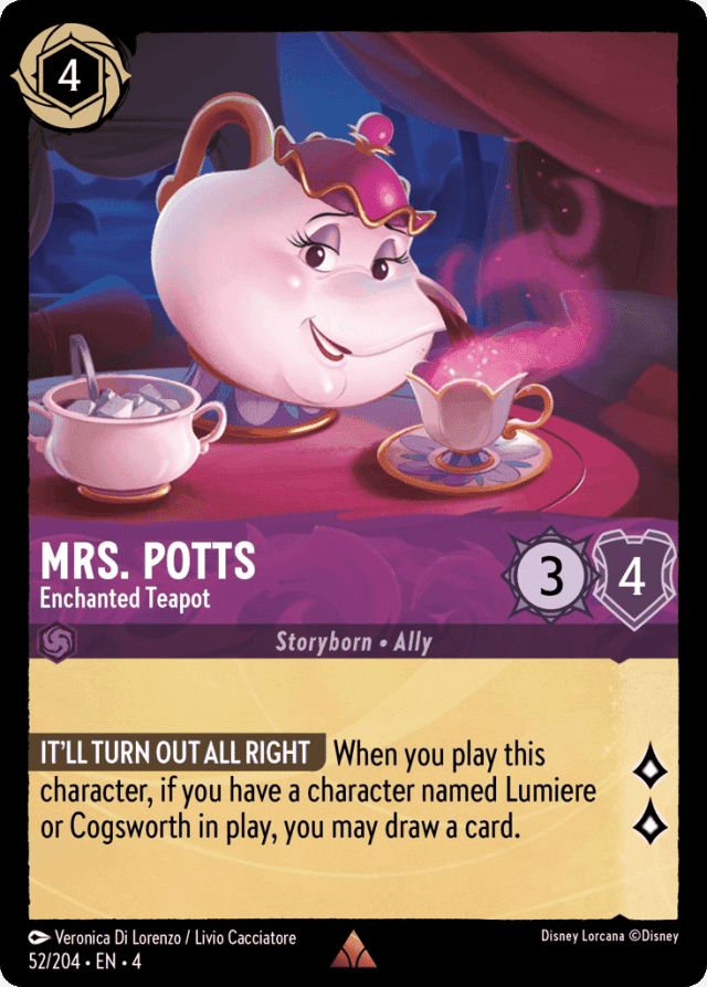 When you play this character, if you have a character named Lumiere or Cogsworth in play, you may draw a card.