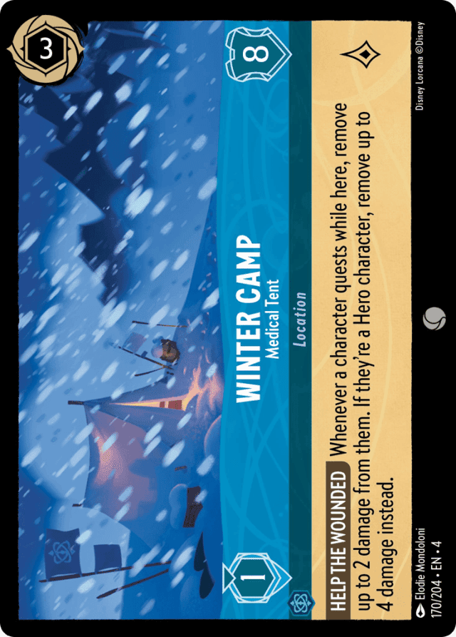 Whenever a character quests while here, remove up to 2 damage from them. If they're a Hero character, remove up to 4 damage instead.