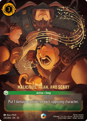 (A character with cost 4 or more can {Exert} to sing this song for free.) Deal 4 damage to chosen character. Your Deity characters gain Challenger +2 this turn. (They get +2 {Strength} while challenging.)