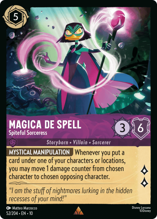 Whenever you put a card under one of your characters or locations, you may move 1 damage counter from chosen character to chosen opposing character.