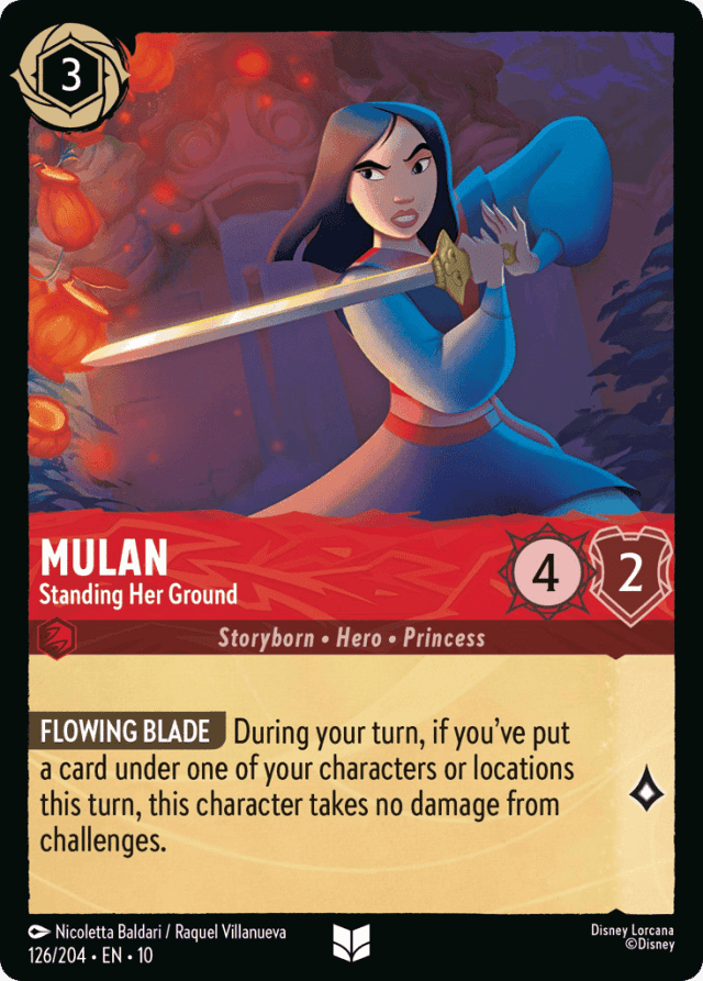 During your turn, if you've put a card under one of your characters or locations this turn, this character takes no damage from challenges.