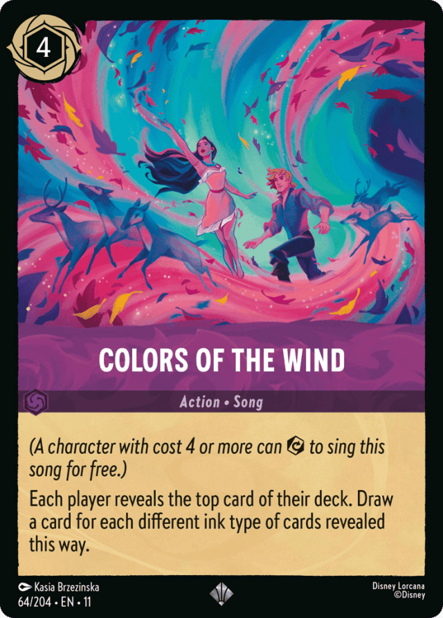 (A character with cost 4 or more can {Exert} to sing this song for free.) Each player reveals the top card of their deck. Draw a card for each different ink type of cards revealed this way.