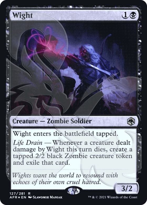 This creature enters tapped. Life Drain — Whenever a creature dealt damage by this creature this turn dies, create a tapped 2/2 black Zombie creature token and exile that card.