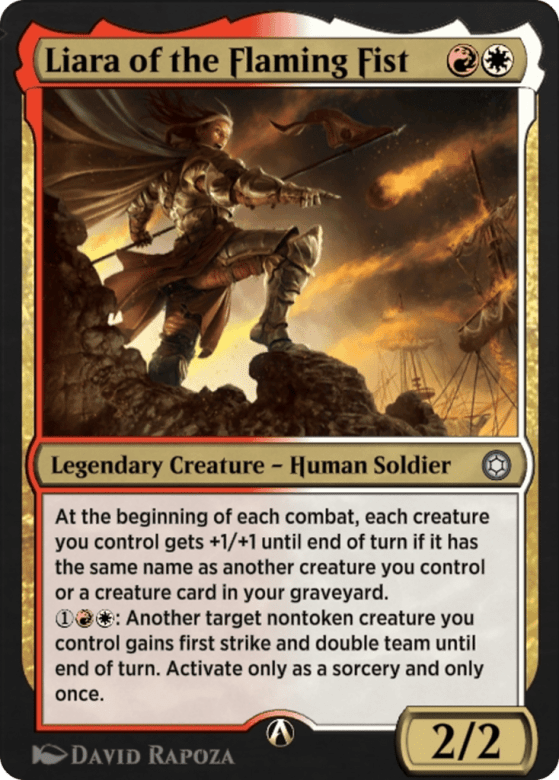At the beginning of each combat, each creature you control gets +1/+1 until end of turn if it has the same name as another creature you control or a creature card in your graveyard. {1}{R}{W}: Another target nontoken creature you control gains first strike and double team until end of turn. Activate only as a sorcery and only once.