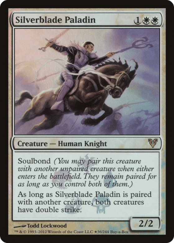 Soulbond (You may pair this creature with another unpaired creature when either enters. They remain paired for as long as you control both of them.) As long as this creature is paired with another creature, both creatures have double strike.