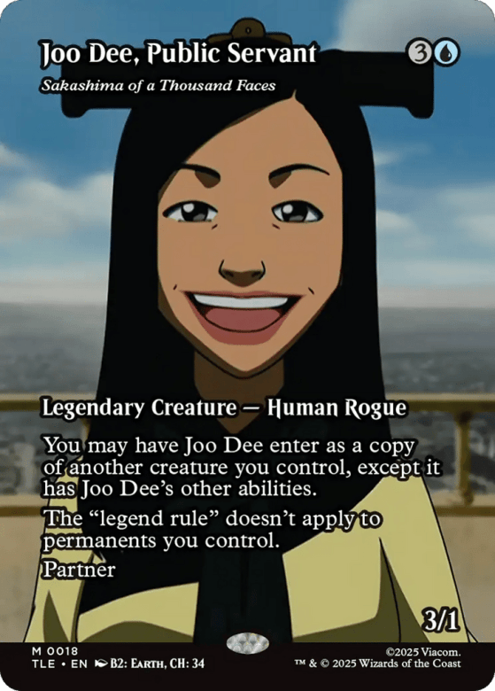 You may have Sakashima enter as a copy of another creature you control, except it has Sakashima's other abilities. The "legend rule" doesn't apply to permanents you control. Partner (You can have two commanders if both have partner.)