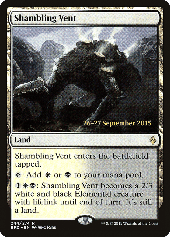 This land enters tapped. {T}: Add {W} or {B}. {1}{W}{B}: This land becomes a 2/3 white and black Elemental creature with lifelink until end of turn. It's still a land.