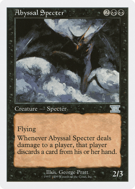 Flying Whenever this creature deals damage to a player, that player discards a card.