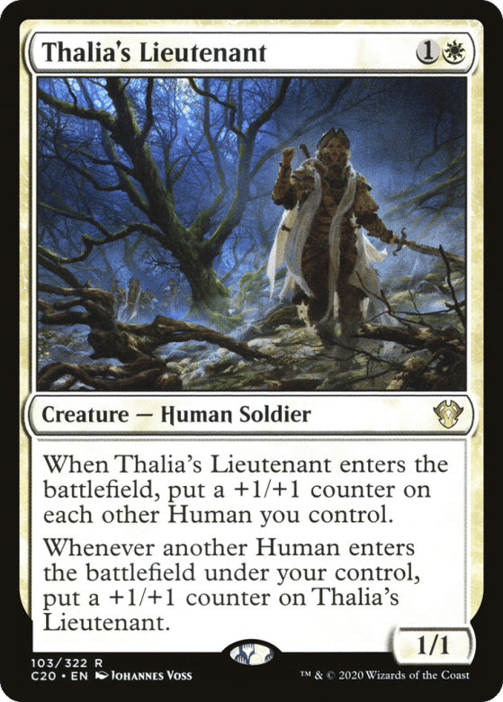 When this creature enters, put a +1/+1 counter on each other Human you control. Whenever another Human you control enters, put a +1/+1 counter on this creature.