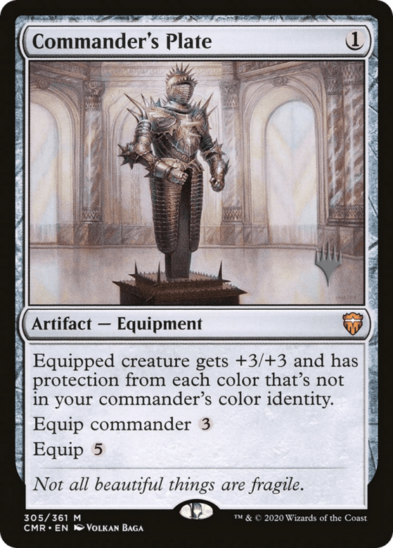 Equipped creature gets +3/+3 and has protection from each color that's not in your commander's color identity. Equip commander {3} Equip {5}
