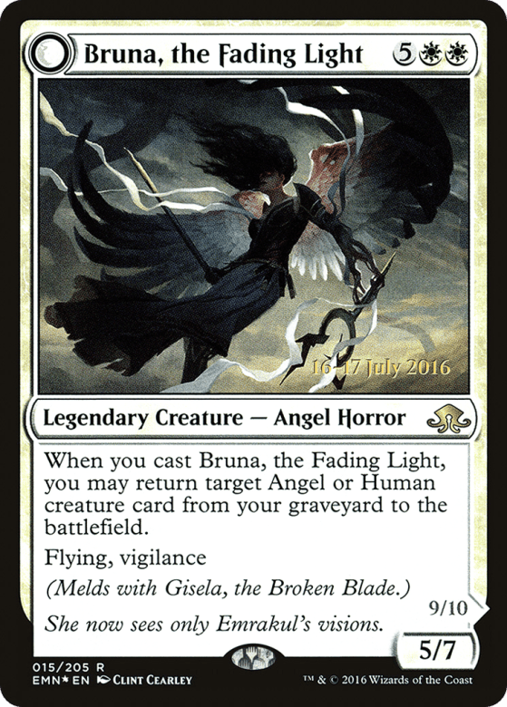 When you cast this spell, you may return target Angel or Human creature card from your graveyard to the battlefield. Flying, vigilance (Melds with Gisela, the Broken Blade.)
