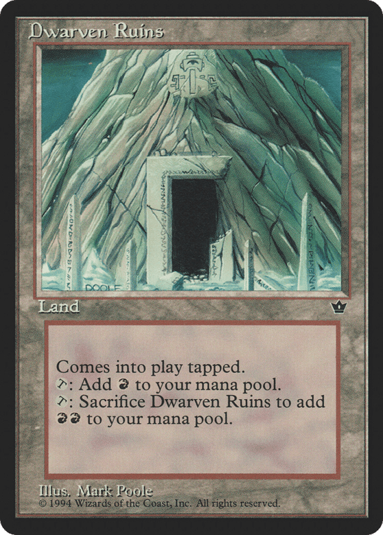 This land enters tapped. {T}: Add {R}. {T}, Sacrifice this land: Add {R}{R}.
