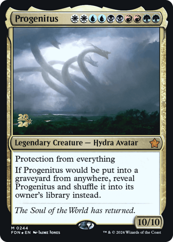Protection from everything If Progenitus would be put into a graveyard from anywhere, reveal Progenitus and shuffle it into its owner's library instead.