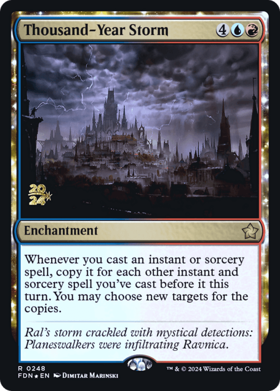 Whenever you cast an instant or sorcery spell, copy it for each other instant and sorcery spell you've cast before it this turn. You may choose new targets for the copies.