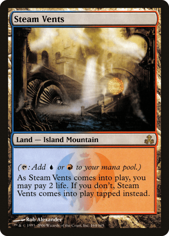 ({T}: Add {U} or {R}.) As this land enters, you may pay 2 life. If you don't, it enters tapped.