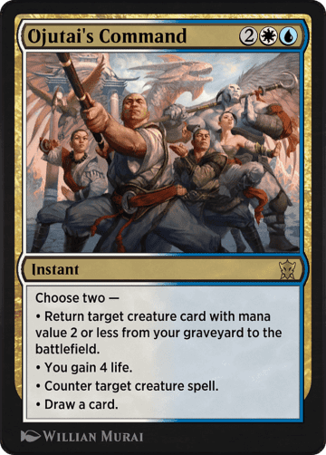 Choose two — • Return target creature card from your graveyard to your hand. • Target player discards a card. • Destroy target artifact. • Kolaghan's Command deals 2 damage to any target.