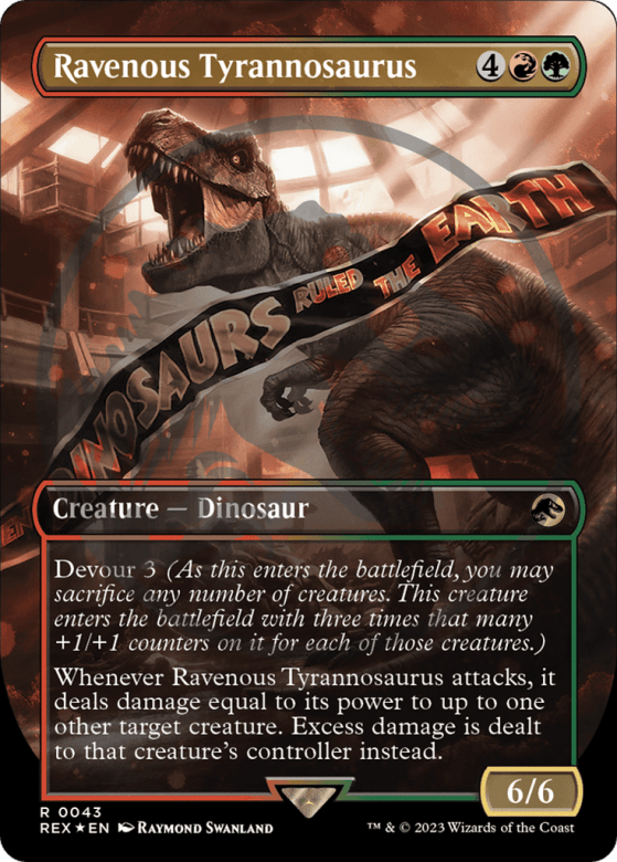 Devour 3 (As this creature enters, you may sacrifice any number of creatures. It enters with three times that many +1/+1 counters on it.) Whenever this creature attacks, it deals damage equal to its power to up to one other target creature. Excess damage is dealt to that creature's controller instead.
