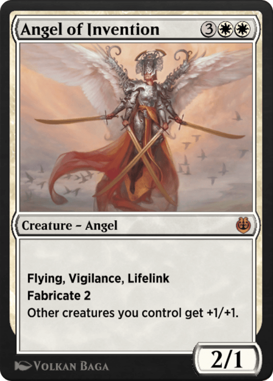 Flying, vigilance, lifelink Fabricate 2 (When this creature enters, put two +1/+1 counters on it or create two 1/1 colorless Servo artifact creature tokens.) Other creatures you control get +1/+1.