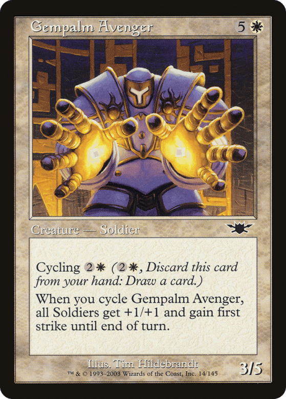 Cycling {2}{W} ({2}{W}, Discard this card: Draw a card.) When you cycle this card, Soldier creatures get +1/+1 and gain first strike until end of turn.