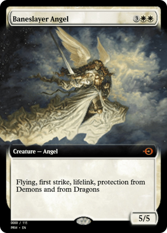 Flying, first strike, lifelink, protection from Demons and from Dragons