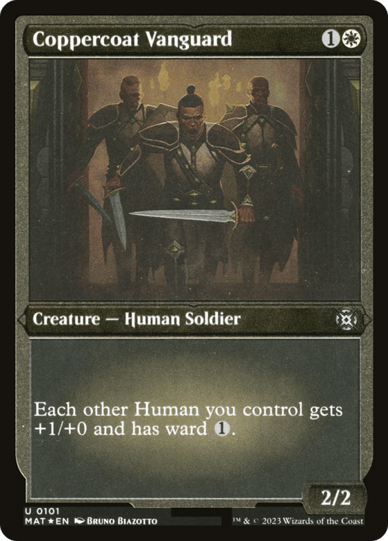 Each other Human you control gets +1/+0 and has ward {1}. (Whenever it becomes the target of a spell or ability an opponent controls, counter it unless that player pays {1}.)