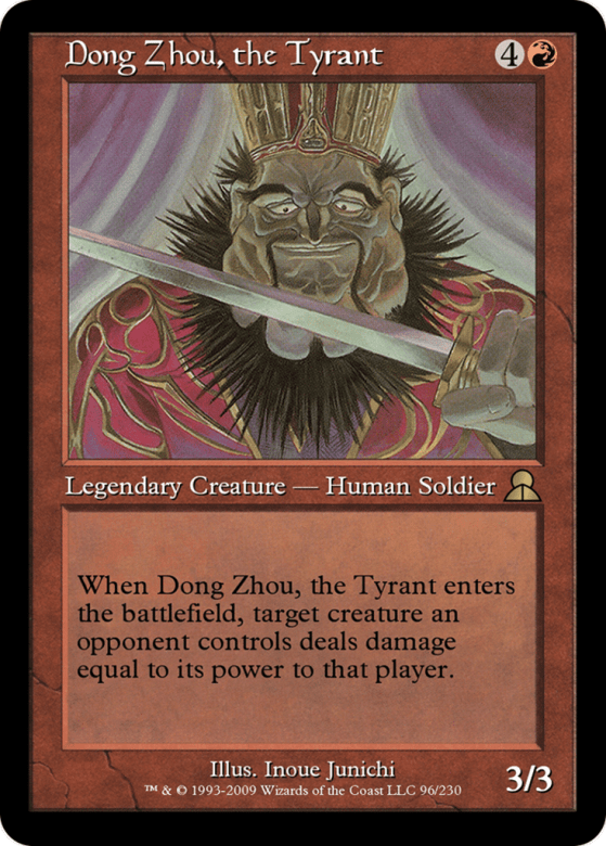When Dong Zhou enters, target creature an opponent controls deals damage equal to its power to that player.